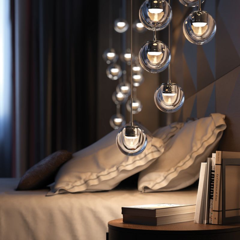 Die Dew Pendelleuchte besticht durch ihre außergewöhnliche Materialkombination und durchdachte Technik. Jeder Leuchtenkörper besteht aus einer massiven Glaskugel, die in Verbindung mit dem integrierten Aluminium-Kühlkörper ihre charakteristische Tropfenform erhält. Die verwendete Hochvolt-LED-Technologie ermöglicht nicht nur einen direkten Anschluss, sondern gewährleistet auch einen besonders energieeffizienten Betrieb. Die klare, schlichte Formensprache in Verbindung mit der hochwertigen Verarbeitung macht diese Leuchte zu einem zeitlosen Designobjekt, das sich harmonisch in jedes Wohnambiente einfügt und durch ihre dreiteilige Komposition skulpturale Akzente setzt.