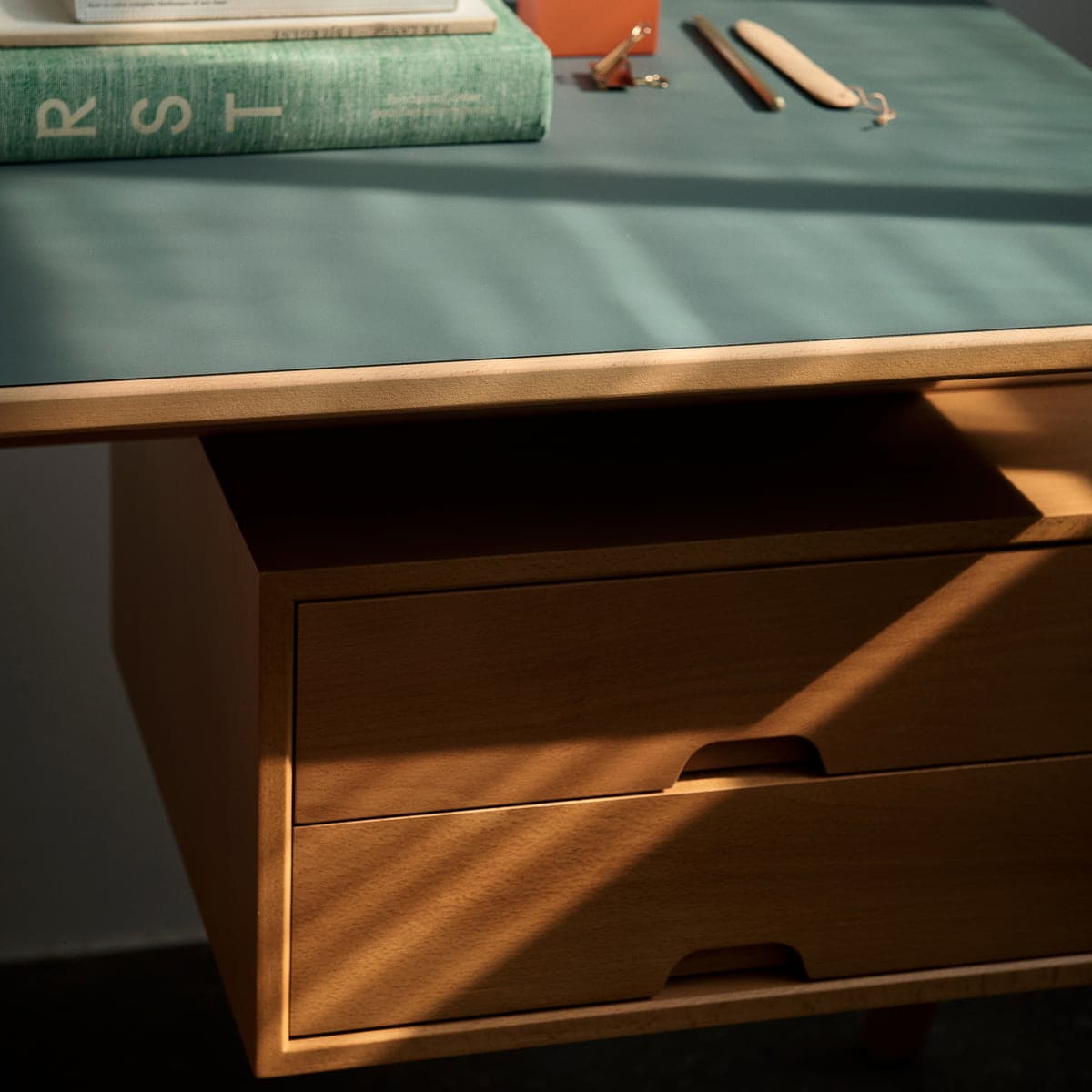 Der Daystak RD3 Schreibtisch von &Tradition vereint funktionales Design mit ästhetischer Eleganz. Entworfen von Robin Day, zeichnet sich der Schreibtisch durch eine großzügige Arbeitsfläche aus, die ausreichend Platz für Computer, Unterlagen und Büromaterialien bietet. Die klare Linienführung und die warmen Holzdetails schaffen eine einladende Atmosphäre in Ihrem Arbeitsbereich.